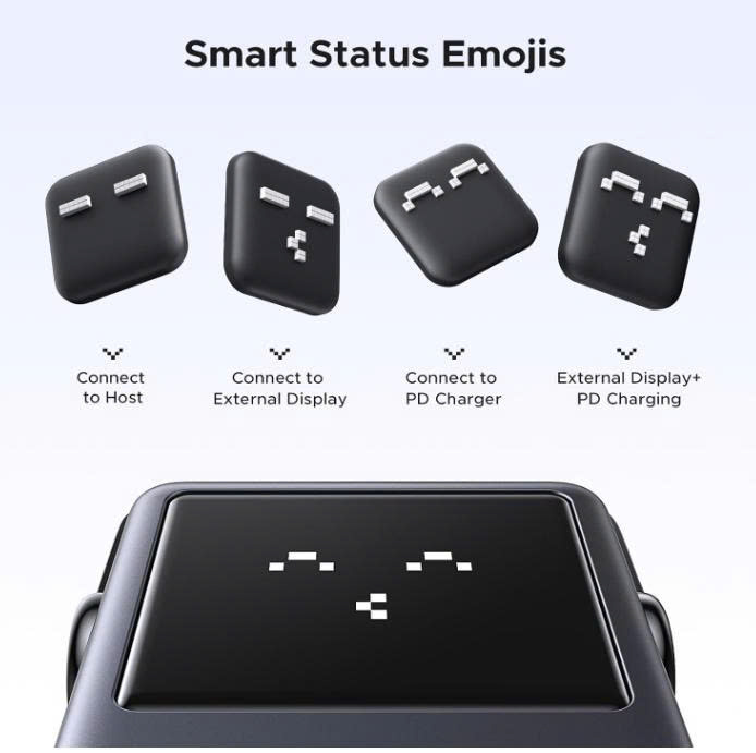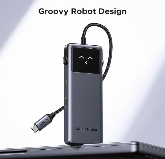 Tính năng: Hub chuyển đổi đa năng Ugreen 45155, Robogan, 3 trạng thái LED, dây nối bọc dù, hỗ trợ 4K60Hz, 5Gbps, sạc nhanh PD3.0 100W