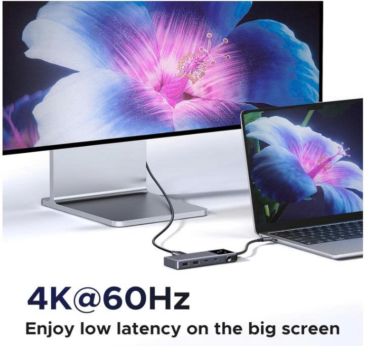 - Cổng USB-C PD (Power Delivery) hỗ trợ công suất tối đa 100W cho phép bạn vừa sạc laptop, MacBook hay iPad Pro, vừa sử dụng hub mà không lo cạn pin. Công nghệ PD thông minh giúp điều chỉnh dòng điện phù hợp, bảo vệ pin và đảm bảo hiệu suất sạc an toàn.