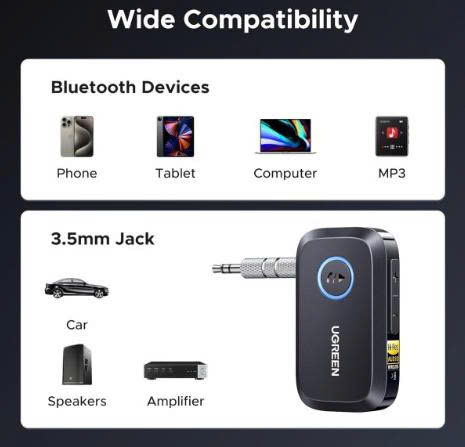 - Lưu ý: Thiết bị này là bộ thu chứ không phải bộ phát và không thể ghép nối với tai nghe Bluetooth; nó chỉ chuyển đổi tai nghe có dây thành tai nghe không dây.