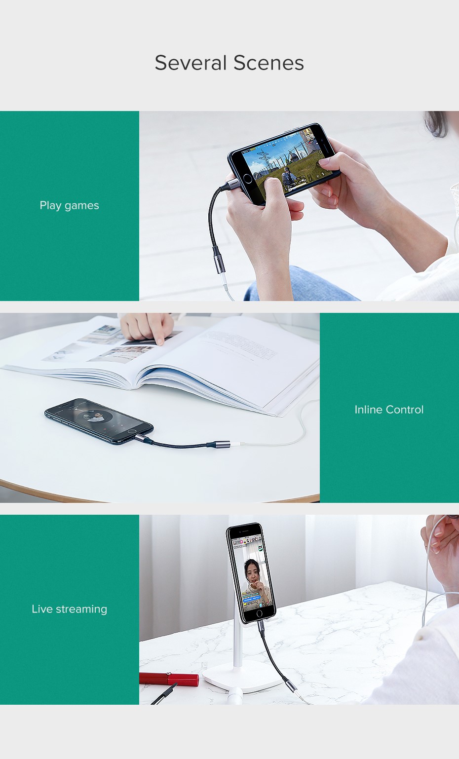 - Cáp chuyển Lightning sang Audio 3.5mm Ugreen 30756, chuyển jack trong điện thoại IP sang jack 3.5mm, để nghe nhạc, dùng tai nghe thông thường