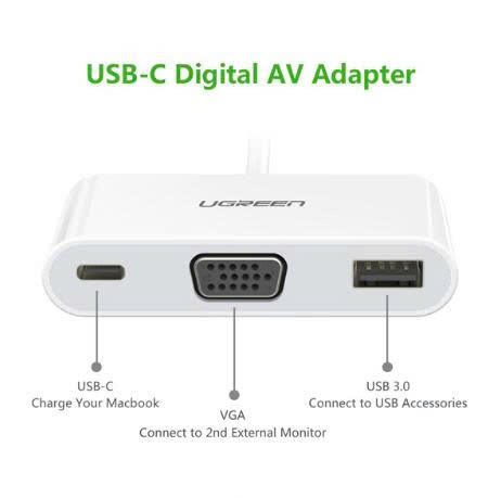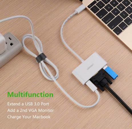 • Ngoài khả năng xuất hình ảnh chất lượng FullHD tới màn hình, máy chiếu qua cổng VGA, Cáp kết nối máy chiếu USB-C cao cấp Ugreen 30376 còn tích hợp cổng USB 3.0 hỗ trợ tốc độ truyền tải dữ liệu lên đến 5Gbps, dễ dàng kết nối chia sẽ dữ liệu từ các thiết bị ngoại vi như chuột, bàn phím, đầu đọc thẻ, ổ cứng di động, usb hub... ngoài ra, cổng USB 3.0 đi kèm này còn hỗ trợ sạc nguồn cho điện thoại di động, máy tính báng.. với nguồn ra hỗ trợ lên đên 900mA.