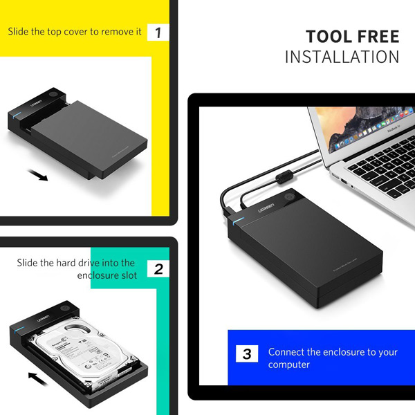 - Tính tương thích cao: HDD box 3,5 inch chính hãng Ugreen 50422 là giải pháp lý tưởng cho kết nối đĩa cứng SATA I / II / máy tính II 3.5 inch, TV thông minh, PS4, PS4 Pro, Xbox 360, Xbox One, vv....