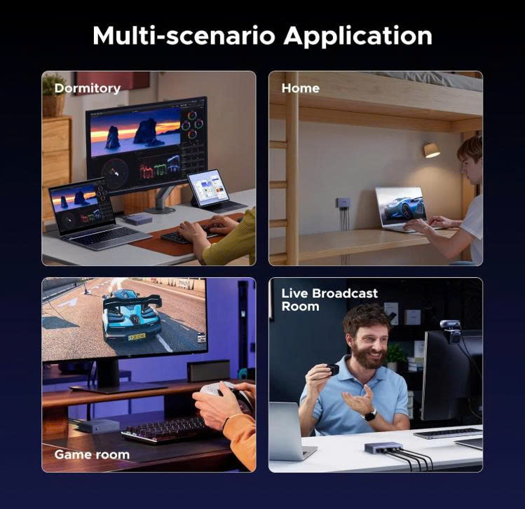 - Bộ chuyển mạch Ethernet gigabit UGREEN hỗ trợ các hệ điều hành Windows/macOS/Linux/Android/iOS, phù hợp cho trường học, nhà riêng, văn phòng doanh nghiệp nhỏ, giám sát an ninh và các địa điểm khác.
